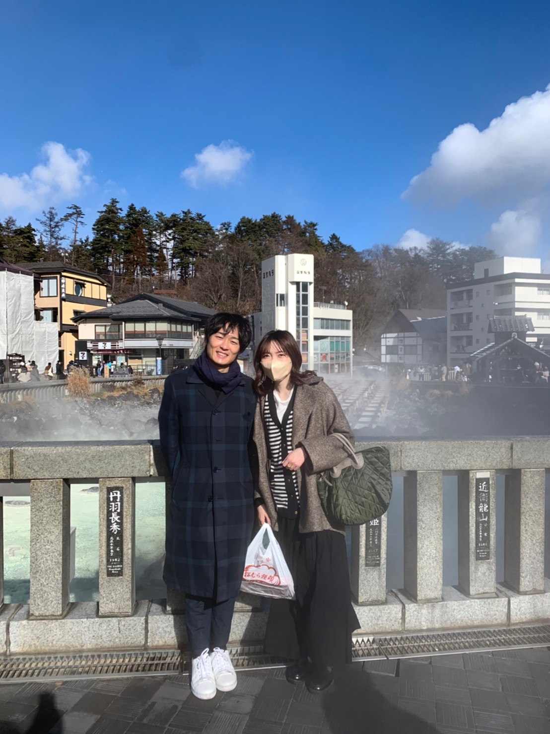 湯畑の前で、初めてのツーショット↓
