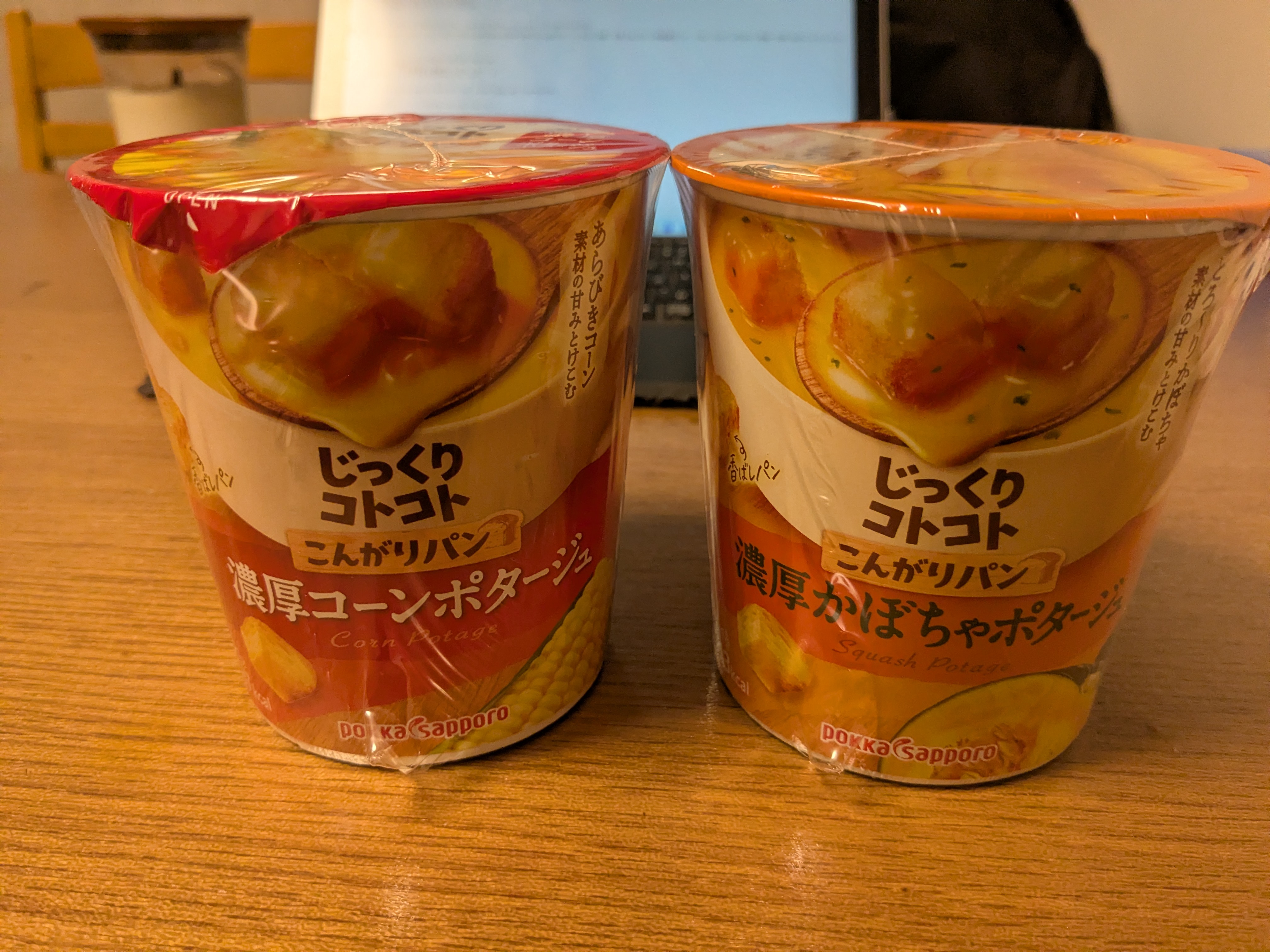 やに、最近は食欲が無いらしくカップスープを愛飲。