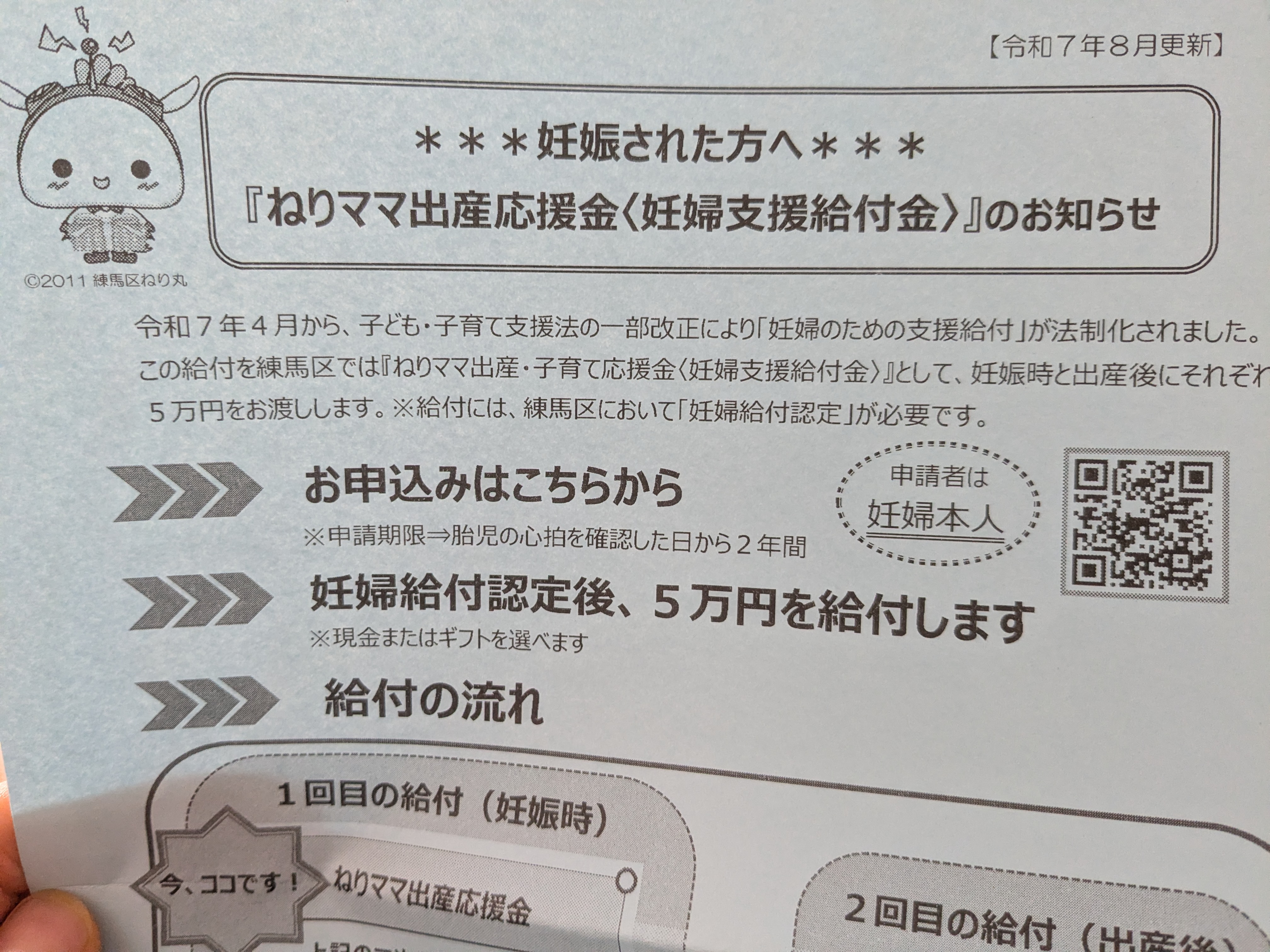 あと、練馬区では妊娠時に5万円貰えるんだってさ。