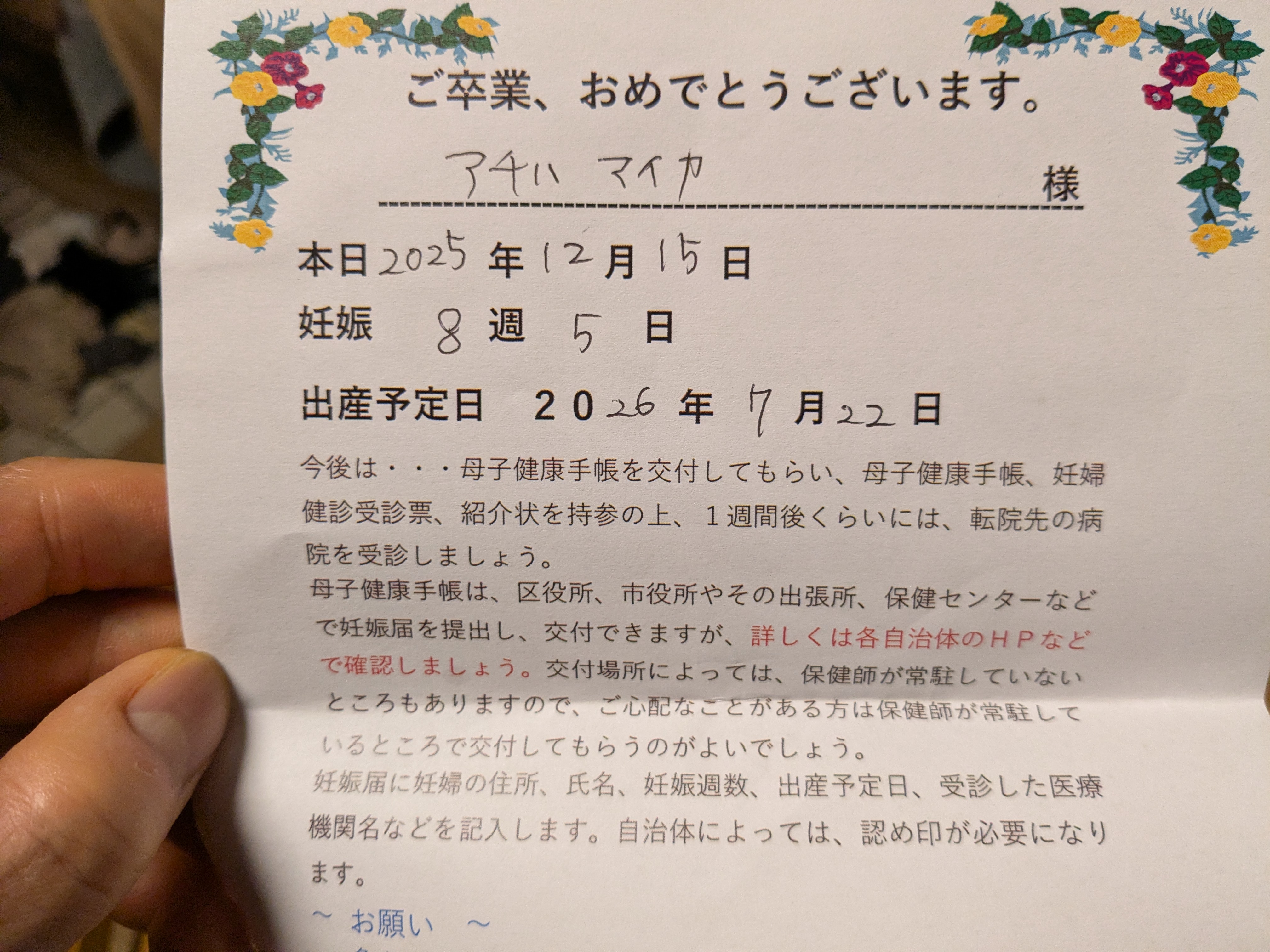 これにて不妊治療は卒業で、いよいよ転院の準備。